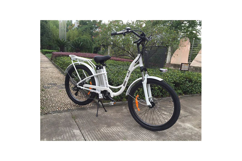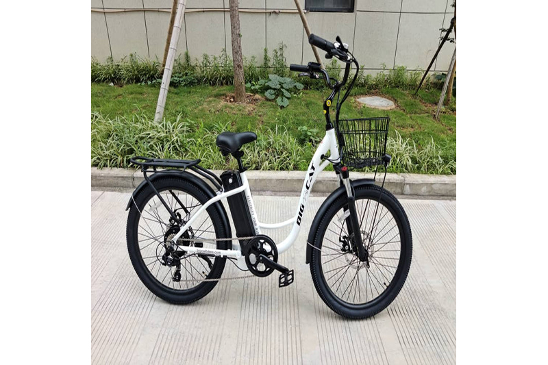 “The LBC electric bicycle is equipped with a 48V 13Ah Removable lithium-ion battery, while still maintaining its strong and efficient 500W geared rear hub motor. On this beach cruiser, you’ll be sure to get an average of 30-60 miles on a single charge! If it’s speed you’re after, we have that covered! These electric bicycles can reach speeds of up to 20 mph at the twist of a throttle, allowing you to get to your destination faster without breaking a sweat! Ride confidently with the upgraded 2.3” wheel and tire combo which gives riders a sturdier feel and overall control of the bicycle.One of the most important features on the LBC is the Pedal Assist function. This latest edition beach cruiser e-bike still offers both pedal assist and throttle functions, however, the new pedal assist function gives riders the ability to choose between 1-5 levels of pedal assist which control the amount or propulsion you get from the motor. Set it to the highest level for effortless riding, or if you’re seeking a workout and want to save some of your battery’s life, set the bike to a lower setting.Equipped with a Shimano 7 speed derailleur, getting up hills is much easier and when you’re coming downhill, don’t worry, The Big Cat Mini Cat features Tektro 180mm Front & Rear Mechanical Disc Brakes with motor cut off switch for a much safer stop.All-Big Cat Long Beach Cruiser models are equipped with a standard King Meter KM-529 LCD Display with intergrated wiring inside frame using simple plug and play design weatherproofing All ElectronicsFeatures:Frame: Step-through aluminum design for easy mounting and dismounting.?Motor: Powerful 500W 48V Bafang rear hub motor.?Battery: Removable 48V 13Ah lithium-ion battery, offering a range of up to 50 miles per charge (actual range may vary based on rider weight, terrain, and other factors).?Speed: Capable of reaching speeds between 20 to 23 mph.?Brakes: Equipped with large 180mm mechanical disc brakes on both front and rear, featuring a motor cutoff switch for enhanced safety.?Tires: 26 × 2.3″ Kenda smooth tires for a balanced ride.?Gearing: Shimano Tourney 7-speed SIS Index derailleur for versatile riding options.?Display: King Meter KM-529 LCD with integrated wiring, offering 5 levels of pedal assist and a walking assist function. ?Suspension: Front suspension fork with lockouts to adapt to various terrains. ?Accessories: Comes standard with a rear removable pannier rack and a front basket (13″W x 10.5″L x 10″H) for added utility.Ride in style with the **Big Cat Long Beach Cruiser** – a sleek, all-white beauty built for smooth cruising and ultimate comfort! “